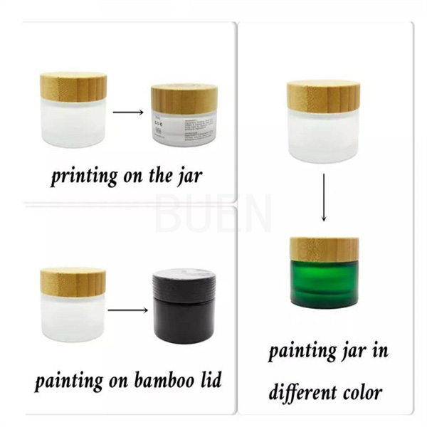 Glass Cosmetic jar frosted green amber black cosmetic glass jar with bamboos screw lid